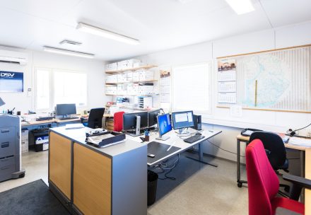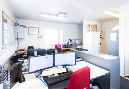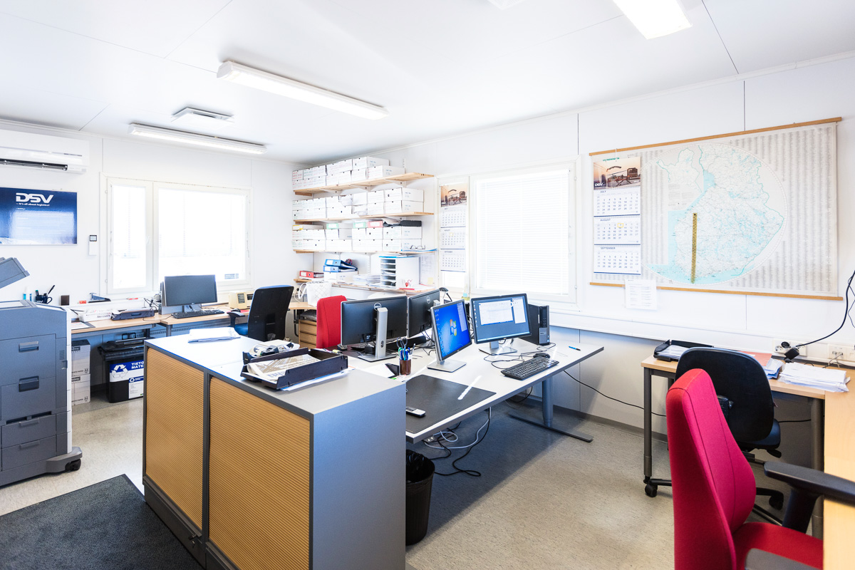 Toimiston pinta-ala on 56 m², ja siinä on minikeittiö sekä sosiaalitilat, jotka tukevat sujuvaa päivittäistä työskentelyä. Kokonaisuus soveltuu hyvin esimerkiksi logistiikan, teollisuuden tai satamatoiminnan tukitilaksi.