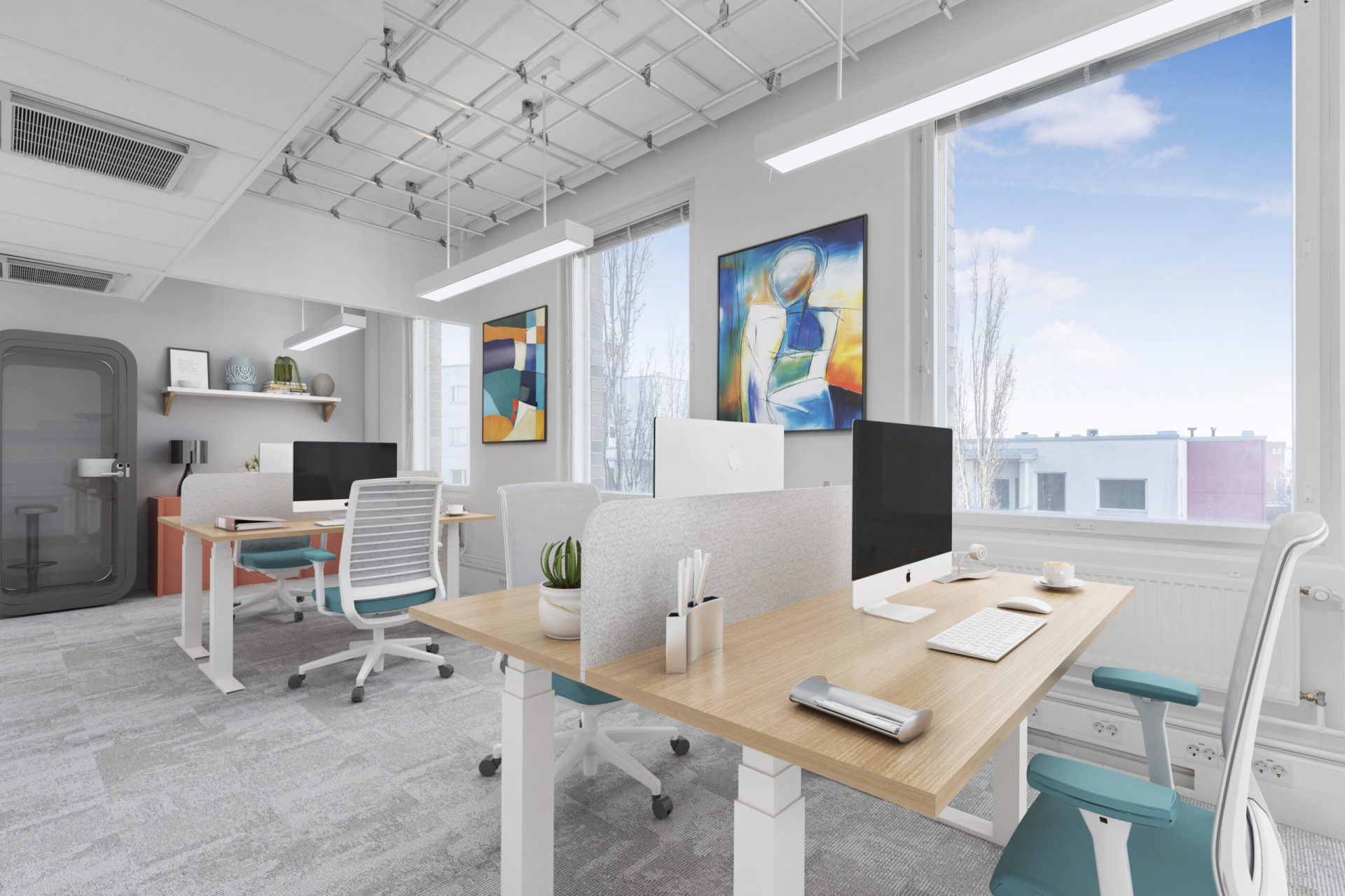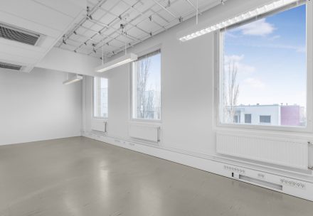 Vuokrattavana toimistotila 438–439 (38 m²), tilava ja monikäyttöinen päätyhuoneisto, joka tarjoaa erinomaiset puitteet pienelle yritykselle, tiimille tai vaikkapa projektitoimistoksi. Suurempi pinta-ala mahdollistaa useiden työpisteiden, neuvottelupöydän tai muun joustavan työympäristön suunnittelun.