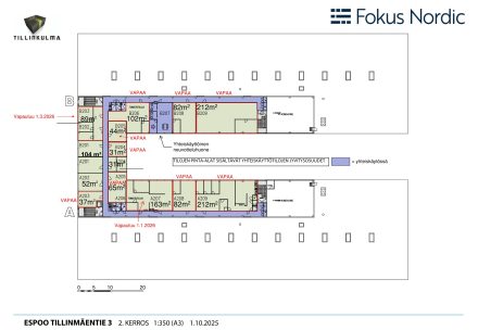 Vuokrattavana koko toimistokerros Espoon Tillinkulmassa, osoitteessa Tillinmäentie 3. Tämä kokonaisuus tarjoaa erinomaiset puitteet yritykselle, joka etsii laajaa, joustavasti muokattavaa toimitilaa kasvaviin tai muuttuviin tarpeisiin.